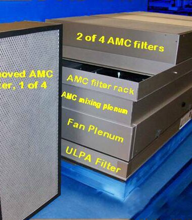 - The AMC filters work based on residence time of the air with the AMC media and since common “construction style” FFUs, like the Envirco MAC-10, have a single fan inlet the flow through an AMC filter would be to high to allow them to work at the high efficiencies they are designed to work at.